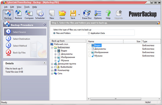 Скачать программу CyberLink PowerBackup 2.50.1305 (22,16 МБ):