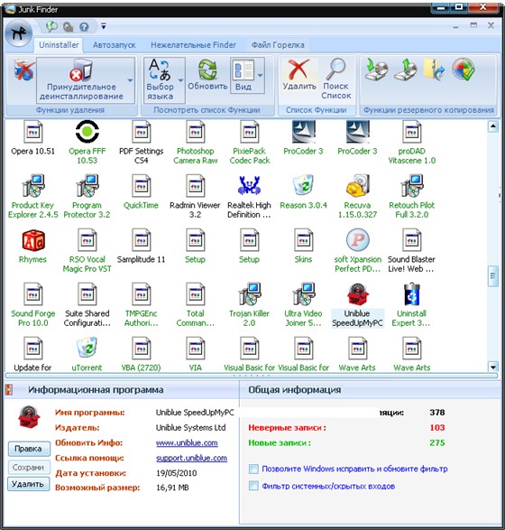 - Ускорение работы ПК, путём удаления нежелательных программ