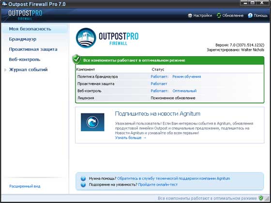 Скачать программу Outpost Firewall Pro 7.0 (3371.514.1232) 64-Bit (34.15 МБ):