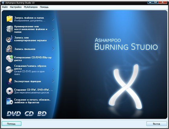 С самого первого выпуска Ashampoo Burning Studio изменила представление о привычном программном обеспечении для записи. Вместо того, чтобы тратить время на подробное изучение сотни сложных свойств, вам надо всего лишь выбрать задание, например - «Записать файлы», «Дублировать файлы» или «Записать фильм», а затем программа поможет вам сделать все необходимое. Вы всего лишь выбираете нужный формат, файлы, и записываете диск. Это легко, но легкость не означает, что у вас меньше функциональных возможностей: усовершенствованные функции записи доступны и опытным пользователям, которые хотели бы выбрать специфические системные файлы или воспользоваться специальной областью начальной загрузки.
