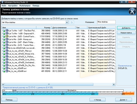 Построение меню DVD – сложная и трудная работа. В Ashampoo Burning Studio 10 вы выбираете стиль меню ( возможно анимационное или статичное, предпросмотр), а программа делает всю работу, автоматически создавая меню и навигационные элементы. Вы также можете записать стандартные DVD файлы (папки VIDEO_TS, содержащие файлы .VOB, .IFO и .BUP), например, для резервирования уже существующих DVD или для записи DVD файлов, созданных с помощью различных авторских программ.
