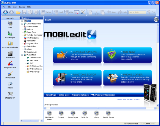 Программа поддерживает очень большое количество моделей мобильных телефонов. Список функциональных возможностей постоянно расширяется за счет добавления новых подключаемых модулей и включения драйверов поддержки новых моделей телефонов.