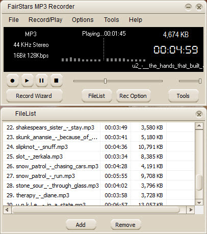 FairStars MP3 Recorder – программа записи аудио в режиме реального времени, предоставляет профессиональные функции записи с полной поддержкой MP3, OGG, APE и WAV форматов. Данная программа позволяет вам записывать звук прямо с вашей звуковой карты, включая запись с микрофона или с линейного входа, запись производится на высоком качестве. Данная программа может использоваться для захвата звука, включая музыку, диалоги с фильмов, игровые звуки, потоковое аудио и все что угодно. Захваченный звук может быт сохранен напрямую в MP3, OGG, APE или WAV формат, без нужды во временных файлах. В дополнение, данная программа включает ID3 тег редактор. К дополнительным функциям относится пропуск тишины (программа обнаружения тишины), ограничения по размеру файла и многое другое.