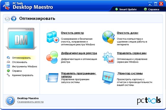 Desktop Maestro - универсальное приложение, в которое входит чистка системного реестра и конфиденциальности, контроль системы. В программе сочетаются свойства продуктов Registry Mechanic и Privacy Guardian, она предоставляет полный набор инструментов для обеспечения оптимальной работоспособности системы, стабильности и конфиденциальности пользователя. Программа помогает очистить, исправить и оптимизировать системный реестр Windows.
