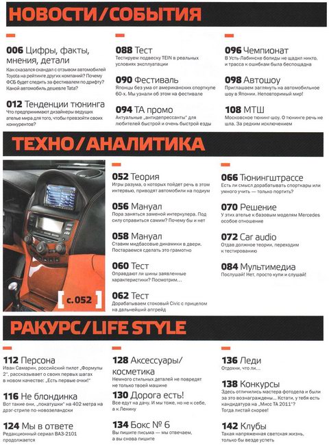 Журнал о тюнинге с конкретными примерами и иллюстрациями. Информационно насыщенные и хорошо написанные статьи, красочные фотографии и качественная полиграфия позволили журналу не затеряться в массе других автомобильных изданий.