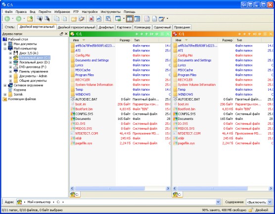 Directory Opus - мощная альтернатива Проводнику с настраиваемым интерфейсом, встроенным ftp-клиентом, внутренней поддержкой архивов, просмотром изображений, встроенным командным языком, настраиваемыми горячими клавишами для управления и очень большим числом других полезных при работе с файлами опций. Например, поиск дубликатов, безвозвратное удаление файлов, поддержка SSL и SSH/SFTP, конвертирование графики и т.д.