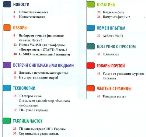 Целиком посвященный вопросам спутникового телевидения журнал. Рассматриваются свичи, DVB-карты, спутниковые антенны, комплекты для установки, модули и карты доступа, спутниковые ресиверы, усилители, а также каналы, их настройка, таблицы частот, различные нюансы, хитрости спутникового приема.