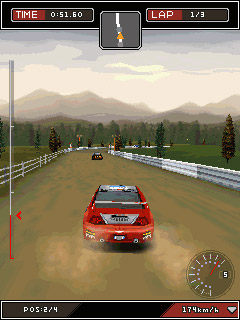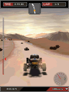 Вы станете участником экстремальных заездов по пересеченной местности в самых разных уголках земного шара – от пустынь и лесов до снежным равнин. В игре несколько разновидностей гонок, в которых вы сможете испытать возможности самых современных спорткаров известнейших производителей. В «гараже» игры присутствуют такие красавцы как Audi TT, Mitsubishi Lancer Evolution IX, Subaru Impreza WRX STI Spec-C и другие шедевры автопрома. Размеры экранов: 128x128 2D, 128x160 2D, 176x208 3D, 176x220 3D, 208x208 2D, 240x320 3D, 320x240 3D, 352x416 3D.