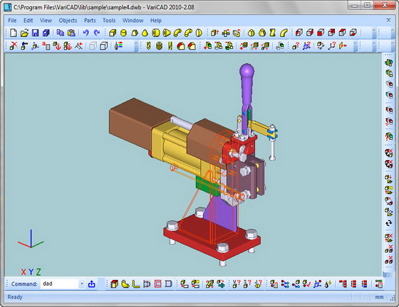 VariCAD 2010 - мульти-платформенная 2D/3D CAD программа для моделирования различных графических объектов. В этой программе пользователь может выбирать между панелями пиктограмм или выпадающими меню. Программа может импортировать и экспортировать как DXF так и IGES. Вы можете выдавливать и вращать 2D геометрию, чтобы получить трехмерные тела. Другие типы твердых тел: призмы, цилиндры, усеченные пирамиды, усеченные конусы, конические трубы, спирали. В дополнение к стандартным булевым операциям объединение и вычитания, вы получаете инструмент вырезания и сохранения, сохранения детали, вырезка сохраненной детали и инструмента, и добавление вырезанной части.