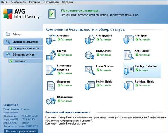 AVG Internet Security - комплексная защита компьютера от всех видов вредоносных программ, включающая в себя, антивирус, антишпион, защиту от спама, фишинга, утечки данных и файрвол, есть возможность автоматического обновления через интернет и работы по расписанию. Система безопасности AVG сертифицирована главными независимыми сертификационными компаниями, такими как VB100, ICSA, Virus Bulletin, Checkmark.