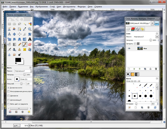 При помощи фильтров, инструментов, масок и слоёв с разными типами наложения (всего 22) можно: