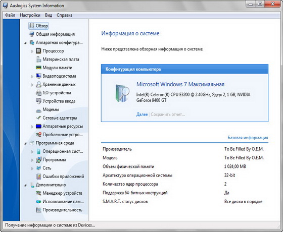 Auslogics System Information позволит вам получить детальную информацию об установленных программах, устройствах и операционной системе с помощью простого и наглядного интерфейса. Программа позволяет получить и систематизировать информацию о компьютере в 14 категориях.