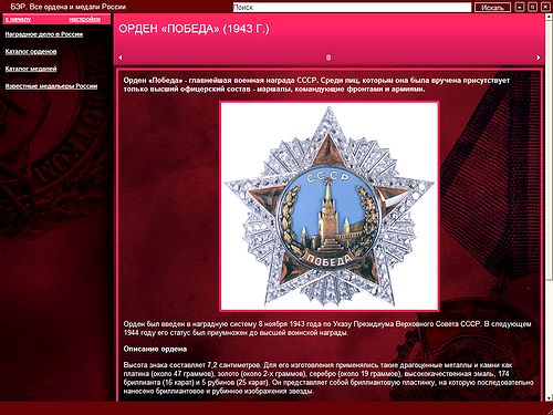 "Отстойная"... Хотел написать "энциклопедия", да рука дрогнула. Статутов наград нет. Фотографии многих наград - без лент. Описание... Это и описанием-то не назвать. Не качайте - переплюётесь.