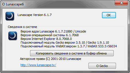 Японский интернет-браузер Lunascape поддерживает сразу три наиболее популярных движка для обработки и вывода веб-страниц – Gecko (используется в Firefox), Trident (используется в Internet Explorer) и WebKit (применяется браузерами Safari и Chrome). Авторы браузера позиционируют его как альтернативу установке нескольких программ для веб-серфинга на один компьютер.