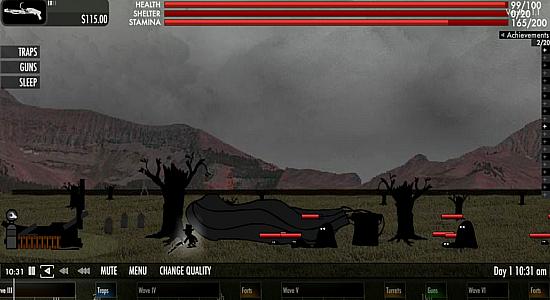 Ваш воздушный шар попал в кораблекрушение, и вам предстоит попробовать выжить на этой незнакомой и враждебной земле. Используйте клавиши-стрелки для передвижения. Цельтесь и стреляйте мышкой.