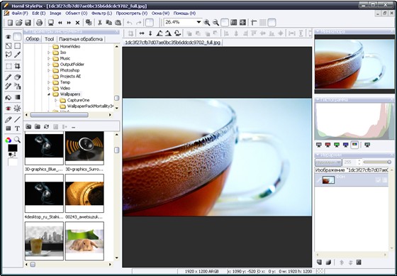 Hornil StylePix - программа, позволяющая ретушировать фотографии, изменять их размер, повернуть, провести цветокоррекцию, наложить текст, сделать фотоколлаж, вырезать, копировать и вставлять фотографии, применять различные фильтры, удалять эффект красных глаз и многое, многое другое. И это бесплатно. Имеет интуитивно понятный пользовательский интерфейс. Он предназначен для легкого и удобного управления отдельными функциями.