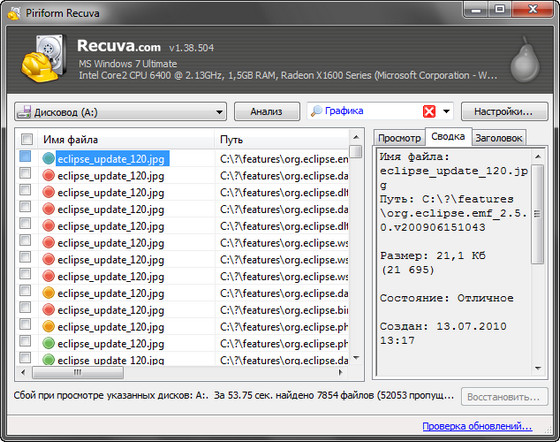 Скачать программу Portable Recuva 1.38.504 (1,73 МБ):