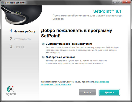 - Если у вас установлена более ранняя версия SetPoint, при установке SetPoint 6.1 она будет удалена, а компьютер в процессе установки будет перезагружен.