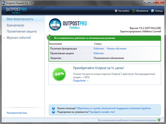 Скачать программу Outpost Firewall Pro 7.0.2 (3377.514.1238) Final x32 (27,19 МБ):