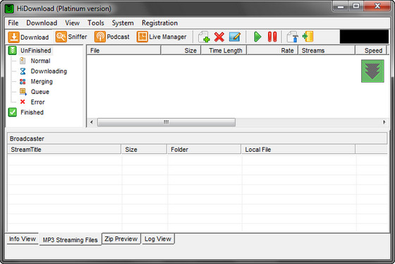 HiDownload - менеджер загрузок. Поддерживает работу по протоколам HTTP, FTP, RTSP (Windows Media), PNM, MMST и MMSU (это значит, что потоковое аудио - RA, RM и Apple Quicktime Streaming - можно "скачать" без проблем). Может работать через прокси, позволяет просматривать архивы и скачивать из них только необходимые файлы, позволяет сохранять Flash, имеется встроенный поиск MP3-файлов. Кстати говоря, есть у этой программы и внутренний поиск.