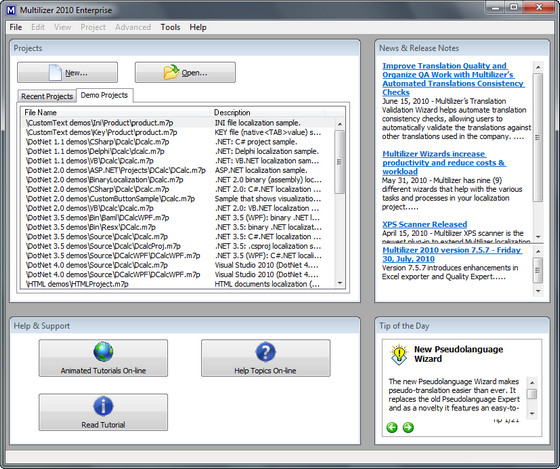 Multilizer 2010 Enterprise is a family of localization products, which is designed to improve localization productivity; with these powerful yet simple tools you can easily make existing software and content multilingual. MULTILIZER 2009 products help companies produce different language versions of their applications and content faster and more efficiently than ever before. In addition to the productivity features introduced in earlier versions, Multilizer 2007 boosts translation, validation, and project administration productivity by introducing 50+ new features. Multilizer 2009 Enterprise is designed for enterprises that want to get maximum savings in localization; this product is optimized for multi-format projects and for automation of repetitive tasks. Multilizer 2007 Enterprise includes a command-line tool that allows users to automate nearly every aspect of localization process. The tool can be automated to create new localization projects, scan, build, import/export translations, share translation work, display projects statistics, etc.
