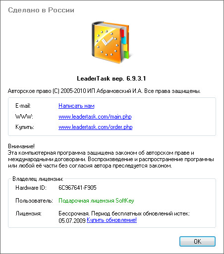 Скачать программу LeaderTask 6.9.3.1 (5,76 МБ):