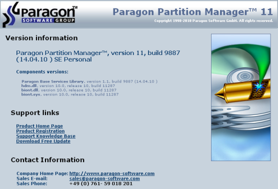Скачать программу Paragon Partition Manager 11 build 9887 SE Personal x86 (103,19 МБ):