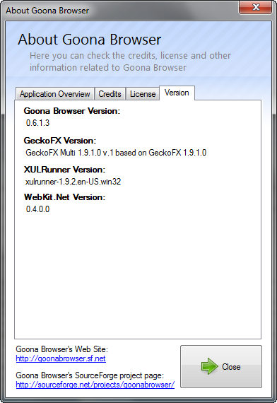 Goona Browser - необычный веб браузер, который позволит выбирать стандарт движка - Gecko или Webkit. Это бесплатный веб браузер, который соответствует всем стандартам HTML, СSS и JavaScript. Браузер имеет очень простой, но мощный графический интерфейс.
