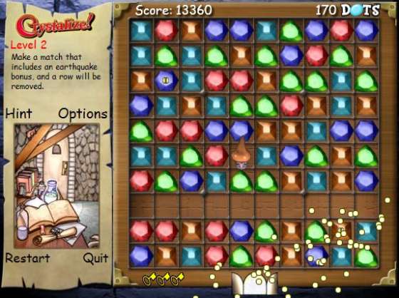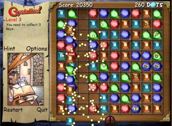 В этой игре вам предстоит помочь доброму волшебнику освободиться из магической темницы. Сделать это непросто - нужно найти три ключа, надежно спрятанные где-то на игровом столе. Сам волшебник слишком ослаб, чтобы дойти до спасительного Портала. Поэтому вам нужно убрать лишние кристаллы с его пути. Секрет победы прост - как только несколько камней образуют линию, они исчезают, освобождая свободное пространство.