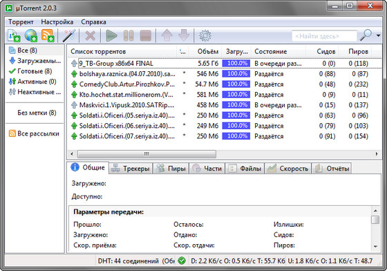 µTorrent - быстрый, удобный, бесплатный и компактный торрент-клент. Клиент µTorrent, на сегодняшний день, является одним из самых функциональных решений для работы с сетью BitTorrent. Программа сочетает в себе оптимальную функциональность при небольшом размере. Поддерживает работу независимо от треккера, позволяет загружать сразу несколько файлов, имеет настраиваемую полосу пропускания, быстрое восстановление прерванной загрузки и многое другое.