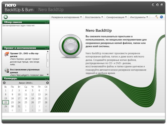 Резервное копирование с помощью Nero BackItUp & Burn: