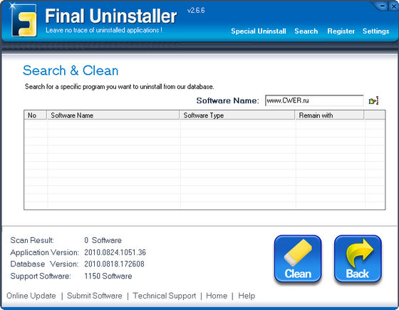 Final Uninstaller - программа позволяет очищать жесткий диск и системный реестр от мусора, оставшегося после удаления каких-либо программ. Программа использует высокоэффективный алгоритм обнаружения, который позволяет быстро просканировать систему и найти ненужные файлы и записи в системном реестре для каждой установленной программы на вашем компьютере. За несколько щелчков мыши программа просканирует ваш жесткий диск и реестр Windows, после чего предоставит вам список приложений, которые были неправильно деинсталлированы. После чего вы сможете выбрать приложения для последующего их полного удаления с компьютера. Программа имеет понятный пользовательский интерфейс и проста в использовании, поэтому подходит для любого пользователя.