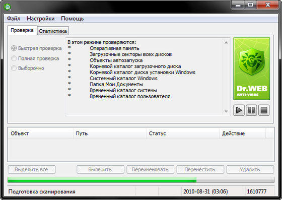 Работает Dr.Web CureIt без инсталляции. Расплата за бесплатность: В программу не входит модуль автоматического обновления вирусных баз, поэтому для того, чтобы просканировать компьютер в следующий раз с самыми последними обновлениями вирусных баз, нужно будет снова скачать Dr.Web CureIt!