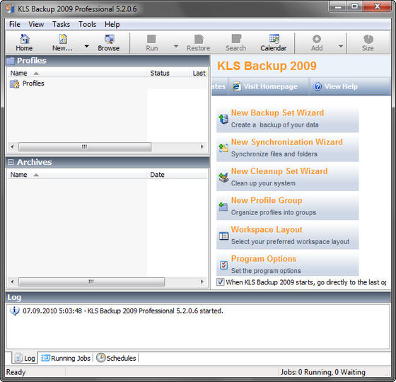 KLS Backup 2009 предназначена для архивирования и создания резервных копий Вашей важной информации. KLS Backup сжимает информацию в ZIP-архивы и позволяет их сохранять на любые накопители, включая сетевые и FTP-сервера. Работа программы достаточно быстра и корректна, возможность создания инкрементных копий поддерживается. В программе весьма неплохо организован планировщик заданий, а интерфейс программы будет понятен даже начинающим пользователям!