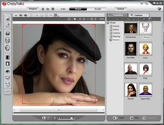 CrazyTalk — новая обновленная и улучшенная версия программы для "оживления" в реальном времени статических фотографий с помощью фирменной технологии 3D фото морфинга Facetrix с добавлением эмоций, речи, звукового сопровождения. В этой версии можно добавить элементы лица и еще много другого. Программа предназначена для художников, аниматоров, но при этом доступна в освоении начинающим пользователям. Если хочется над кем-нибудь подшутить — программа поможет сделать это эффективно и быстро, для этого достаточно загрузить в CrazyTalk исходное изображение, указать с помощью ключевых точек месторасположение глаз, рта и носа, очертить овал лица и можно приступать к свободному творчеству. Полет фантазии практически ничем не ограничен!