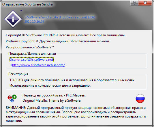 Скачать программу SiSoftware Sandra Lite 2010.10.16.67 (25,47 МБ):