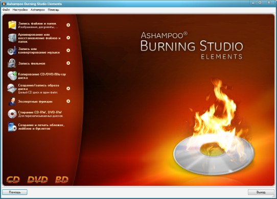 Ashampoo Burning Studio Elements - программа, с помощью которой Вы можете записать фильмы, музыку и данные - быстро и эффективно. Программное обеспечение с интуитивно понятным пользовательским интерфейсом предлагает Вам компактные функции для того, чтобы выполнять все задачи, касающиеся Ваших проектов записи – легко, создаёт диски данных, записывает резервные копии, музыкальные рипы, создаёт аудиокомпакт-диски или записывает уже существующие пленочные файлы на диски Blu-ray. С Ashampoo Burning Studio Elements Вы можете также записать HD - и full HD диски (720p and 1080p), если уже существующие файлы были сохранены в готовых папках. Аудиокомпакт-диски могут быть также эффективно и удобно рипованы с этим программным обеспечением. Интегрированный аудиоплеер позволяет Вам проиграть аудиофайлы и CD непосредственно, таким образом, Вы можете не открывать другой аудиоплеер, чтобы прослушать музыкальные заголовки. Ashampoo Burning StudioElements в один миг поможет разработать и напечатать покрытия, метки и буклеты в различных форматах. Запишите CD, DVD и Диски Blu-ray быстро и удобно!