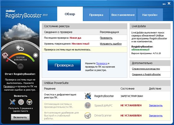 Скачать программу Uniblue RegistryBooster 2010 v4.7.6.10 (4,9 МБ):