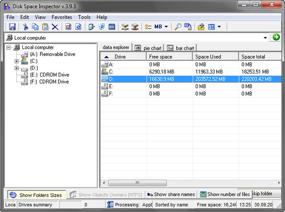 - Disk space pie chart tool
