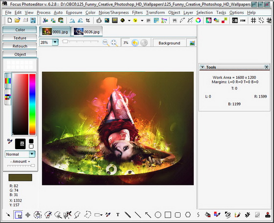 Focus Photoeditor - мощный и легкий в использовании редактор изображений, который вы сможете использовать для обработки и коррекции цифровых фотографий, а также для создания графики для ваших веб-сайтов, дома и офиса. Вы сможете получать фотографии с жесткого диска, другого приложения, а также с помощью сканера или фотокамеры и начинать их немедленную обработку в данном редакторе. В программе имеются функции для автоматического преобразования фотографий за один клик, благодаря чему вы сможете улучшить ваши фотографии за считанные секунды. Также вы сможете самостоятельно отредактировать внешний вид изображений при помощи встроенных в программу инструментов. Focus Photoeditor является неплохим выбором для новичка и для профессионального фотографа, т.к. в нем сочетаются множество качественных функций легких в использовании и настройке.