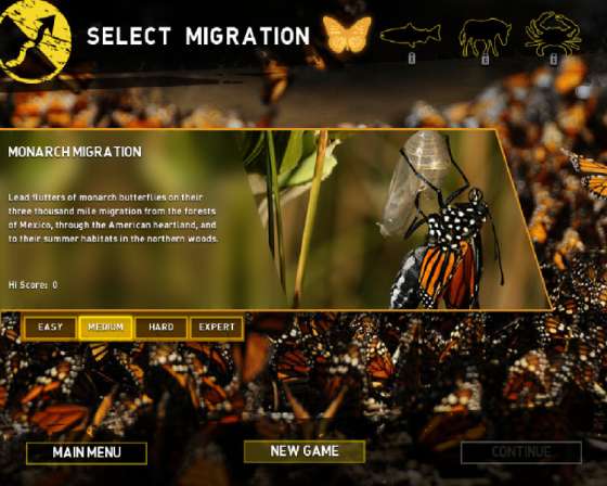 Помогите различным видам животных успешно справиться с Великой Миграцией. Избегайте хищников и препятствий на вашем пути, пересекающем весь земной шар. Проложите путь для бабочек монархов, лососей, зебр и красных крабов через разнообразные ландшафты в этой забавной игре, смеси симулятора и головоломки, основанной на одноимённом телевизионном шоу Национального Географического Общества. Сможете ли вы довести подопечных до безопасного места и выжить?