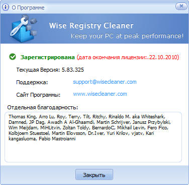 Скачать программу Wise Registry Cleaner Pro 5.83 Build 325 (2,37 МБ):