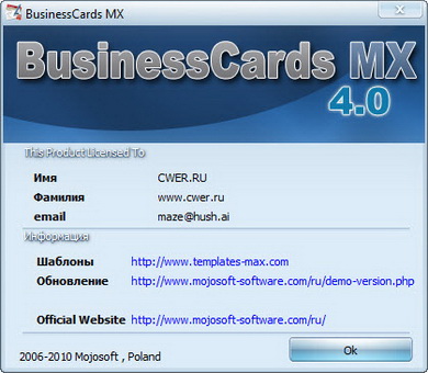 Скачать программу BusinessCards MX 4.0 (87,59 МБ):