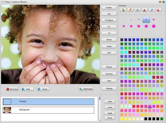 Video Capture Master - программа для записи видео и захвата скриншотов с различных видеоустройств. Поддерживаются Web-камеры, ТВ-тюнеры, устройства захвата и цифровые камеры. Причем для последних имеются средства управления, благодаря которым можно в удобном виде ими управлять. Программа предоставляет доступ к настройкам всех поддерживаемых видеоустройств. Вы сможете записывать видео в реальном времени, просматривая при этом изображение или телеканал. Имеется дополнительная возможность наложения на записываемое видео или скриншоты водяных знаков, в качестве которых может использоваться обычный текст или изображение-логотип. В качестве основного формата записи разработчиками предлагается AVI, но вы можете для захвата видео и звука использовать произвольные кодировщики, установленные у вас в системе.
