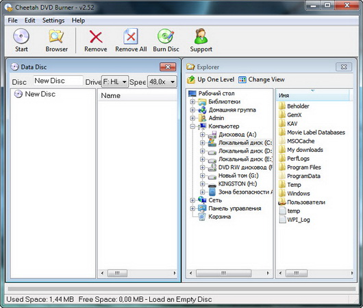 Скачать программу Cheetah DVD Burner 2.52 (18,76 МБ):