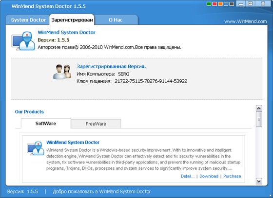 Скачать программу WinMend System Doctor 1.5.5 + Rus (6,92 МБ):