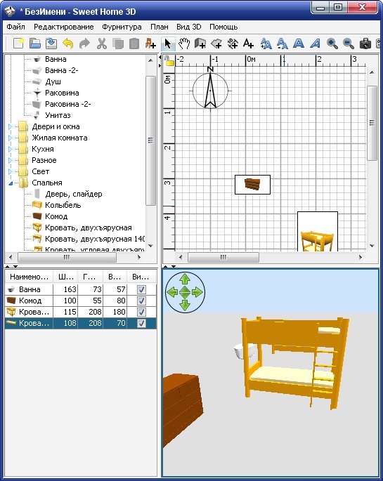 Sweet Home 3D - программа, предназначенная для проектирования интерьера. Sweet Home 3D поможет вам виртуально расставить мебель по комнатам вашего дома, выбирая наиболее удачное расположение элементов интерьера. Во время работы можно использовать 3D-модели, которые в большом количестве представлены на официальном сайте и доступны для бесплатной загрузки. Sweet Home 3D дает возможность предварительного просмотра интерьера в 2D (вид сверху), а также может визуализировать конечный вариант расстановки мебели в 3D.