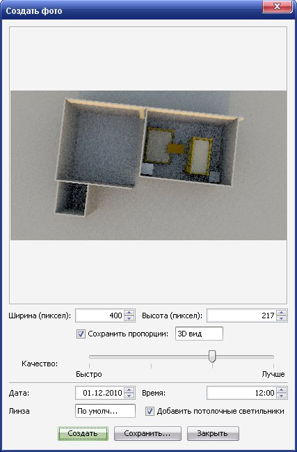 - Improved photo rendering at the two best quality levels (windows and images transparency support, sun orientation depending on the chosen hour and date, lights management, matt / shiny appearance of surfaces).