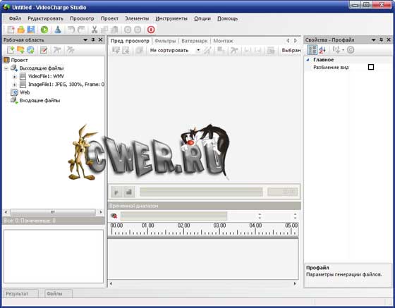 Videocharge Studio - приложение предназначенное для создания видео, оптимизированного для просмотра в Интернете. С помощью этой программы Вы сможете создавать видео-галереи (YouTube видео), графические галереи, закачивать видео на FTP, защищать видеофайлы с помощью "водяных знаков", редактировать видео.