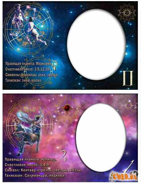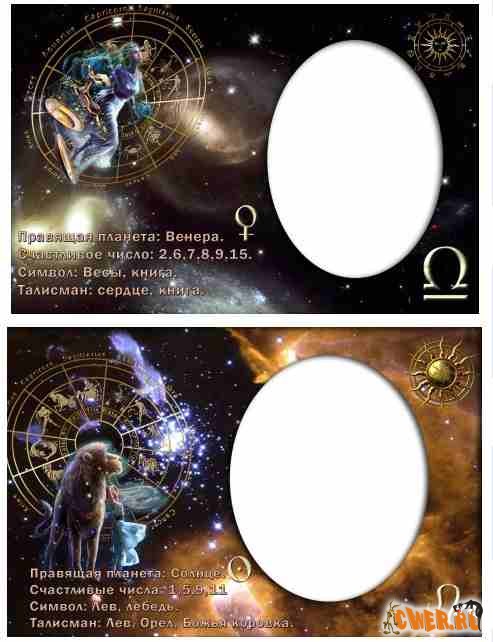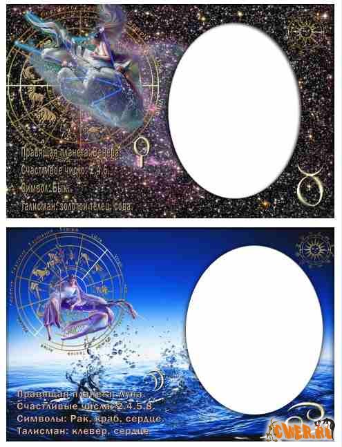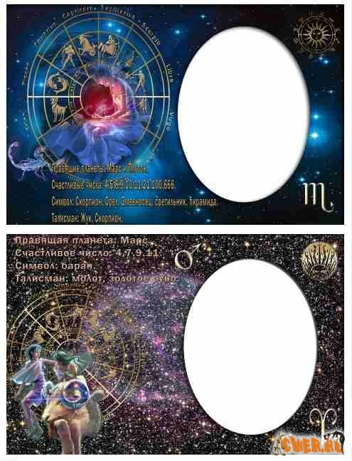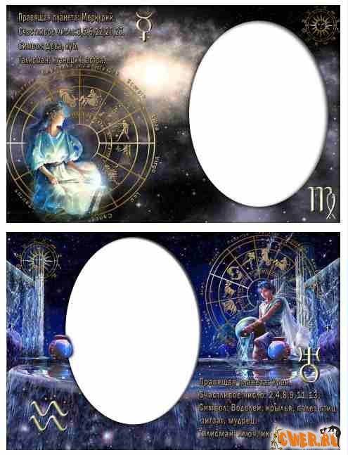 Фоторамки всех знаков зодиака. Если поместить в предназначенное окно портрет любимого, дорогого вашему сердцу человека, то получится оригинальная поздравительная открытка ко дню рождения.